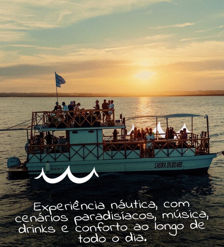 Mais do que um passeio, o Caeira Onboard é uma experiência completa no mar, combinando música, gastronomia, paisagens e conforto em um ambiente leve e sofisticado.